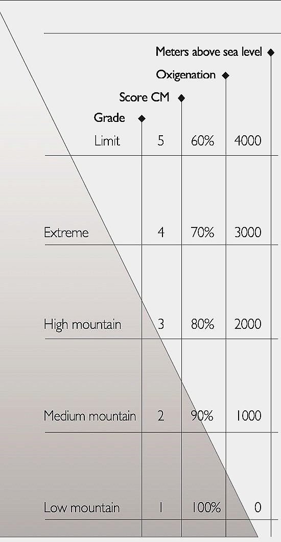 The CM degrees determine the hunting value that our fellows- hip gives to mountain hunting, according to 6 variables: Altitude (chemical), Level (physical), Difficulty (socioeconomic environ- ment), Prestige (exclusivity, distance, difficulty, price), Abundance (population), Quality (objective) of the trophy. With a maximum score of 29o CM